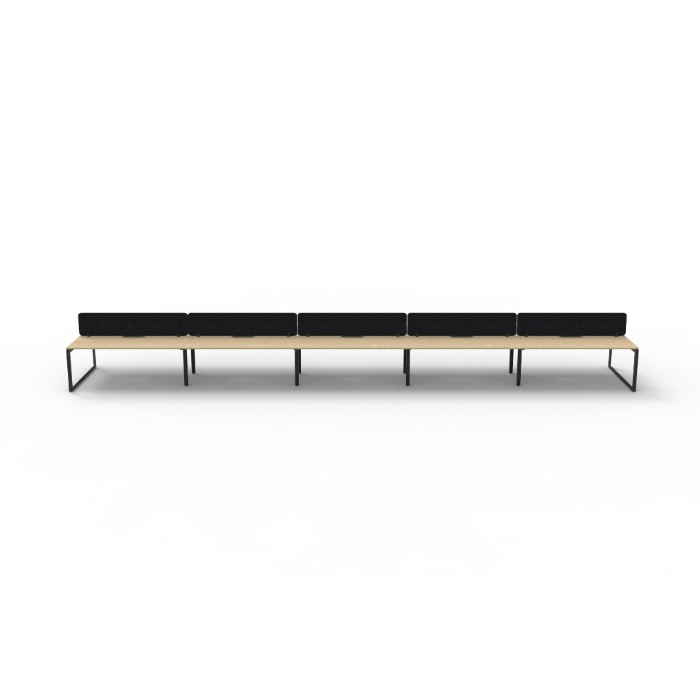 • 10 person double sided workstation with Natural Oak top and Black Satin frame, Black Eco screen.