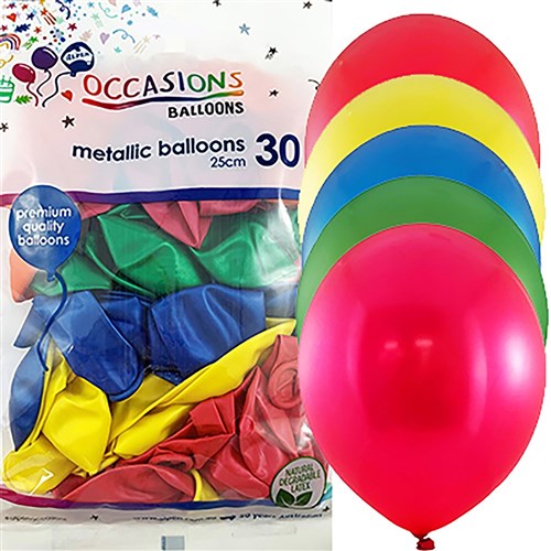Alpen Occasions Balloons 25cm Metallic Assorted Colours Pack Of 30