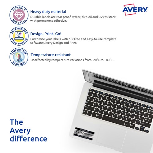 Avery Heavy Duty Laser Labels Asset Tags Silver L6012 96x50.8mm 10UP 200 Labels