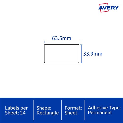 • Size: 63.5x33.9mm 240 labels, 10 sheets. 24 labels per sheet (24UP).