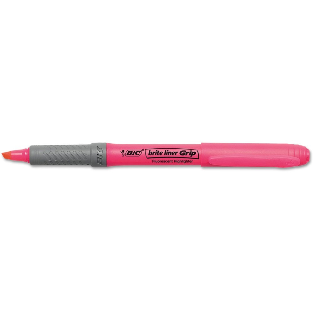Bic Brite Liner Grip Highlighter Chisel Pink Pack of 12