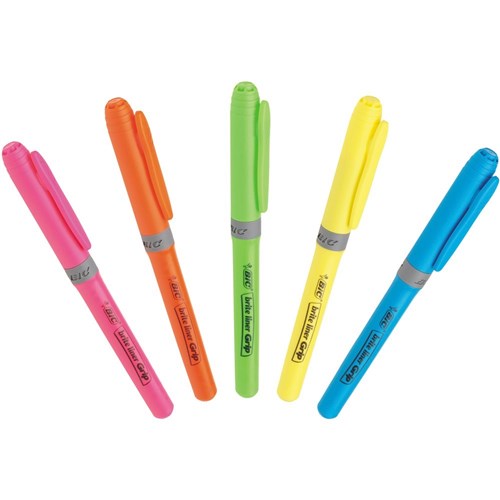 Bic Brite Liner Grip Highlighters Chisel 1.6-3.3mm Assorted Colours Pack Of 5