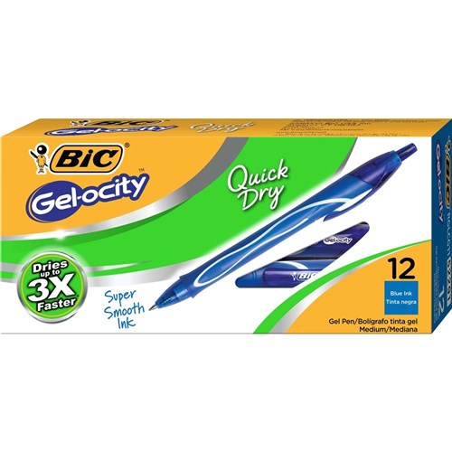 Bic Gelocity Gel Pen Retractable Medium 0.7mm Blue Pack of 12
