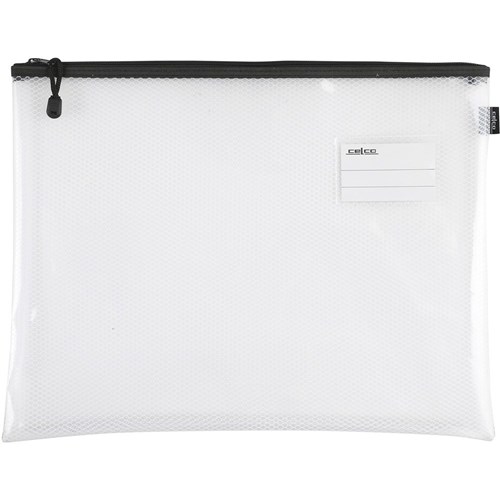 Celco Mesh Pencil Case Single Zip Large 450 x 330mm Clear