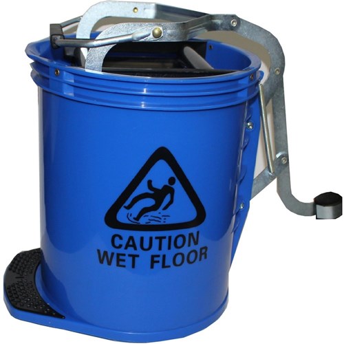 Cleanlink Heavy Duty Plastic Mop Bucket Metal Wringer 16 Litres Blue