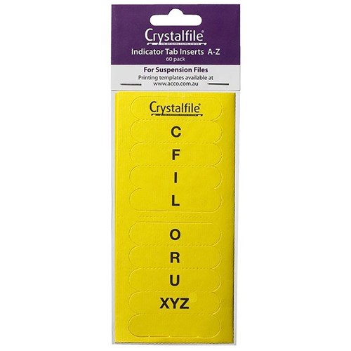 Crystalfile Indicator Tabs Inserts A-Z Yellow Pack Of 60