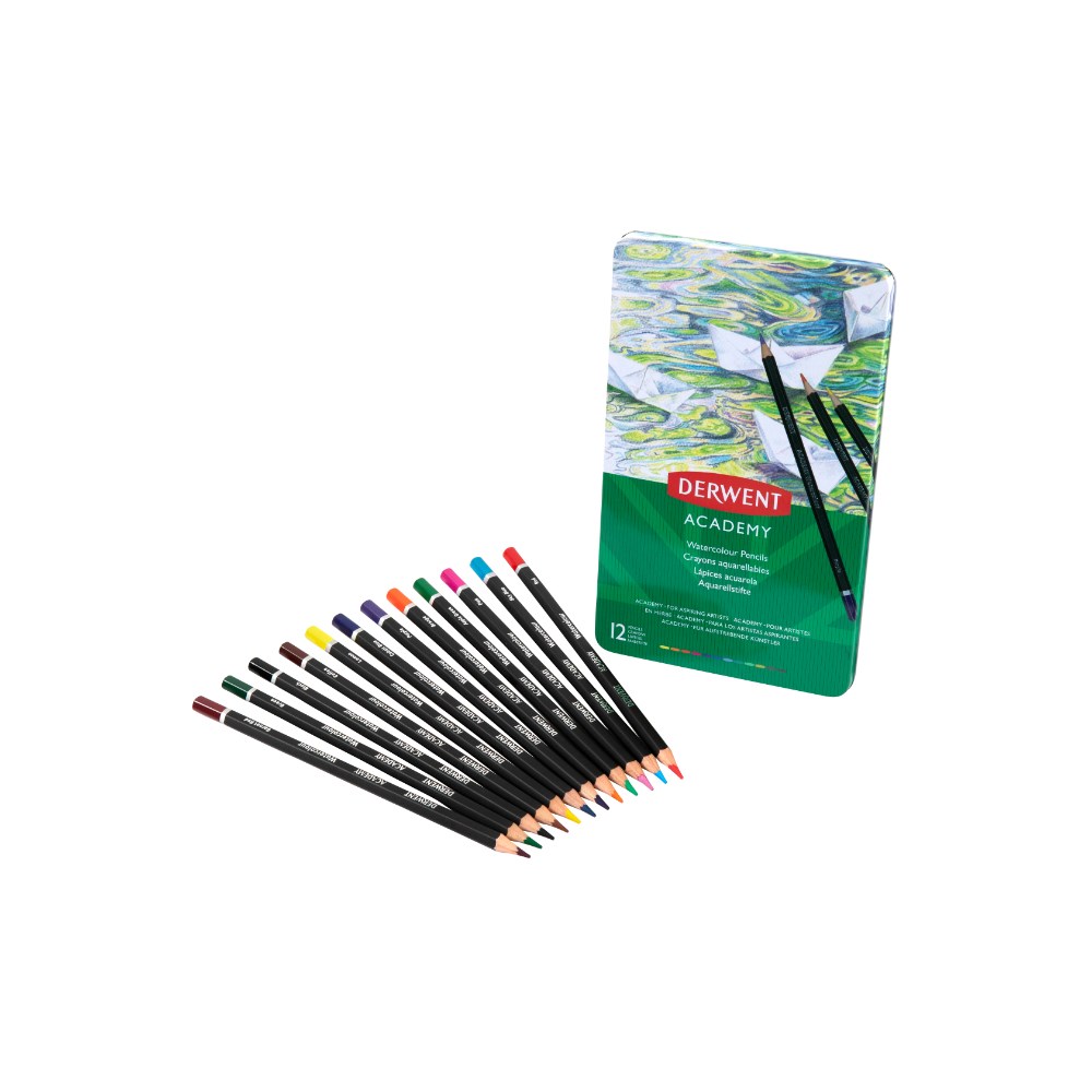 Derwent Academy Watercolour Pencils Assorted Tin Pack Of 12