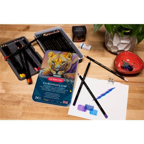 Derwent Chromaflow Coloured Pencils Assorted Tin Pack Of 24
