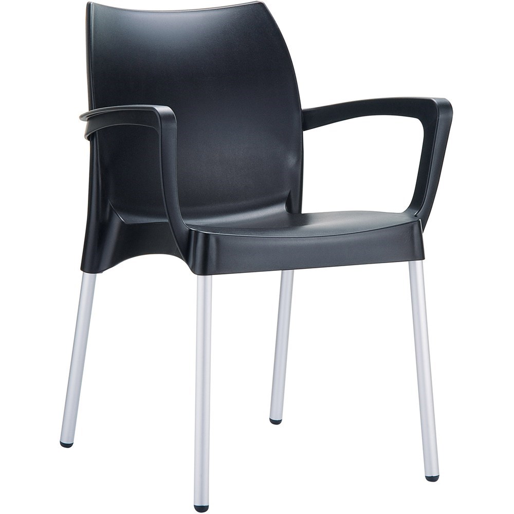 Dolce Hospitality Dining Chair With Arms Indoor Outdoor Use Stackable Polypropylene Black