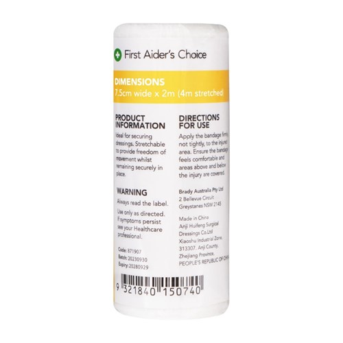 First Aider's Choice Conforming Bandage 7.5cm Wide White