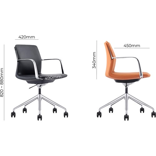 • Chair Dimension: Seat Width 490mm, Seat Depth 450mm, Back Height: 340mm, Overall Height 820-880mm.