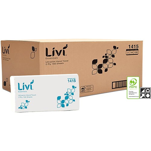 Livi Essentials Hand Towel Ultraslim 2 Ply 150 Sheets Box Of 16