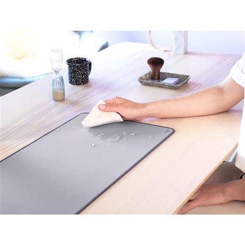 • Logitech Desk Mat features a spill-proof coating that withstands accidental mishaps, so liquids can easily be wiped away.