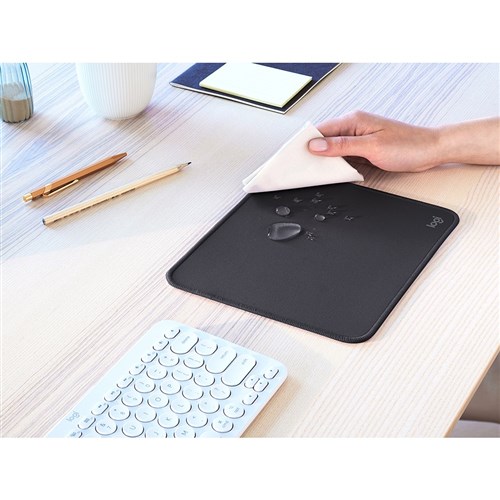 • Logitech Mouse Pad features a spill-proof coating that withstands accidental mishaps, so liquids can easily be wiped away.