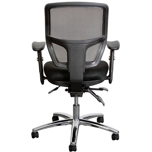 • Medium back, adjustable seat height, adjustable arms and moulded foam seat with mesh back.