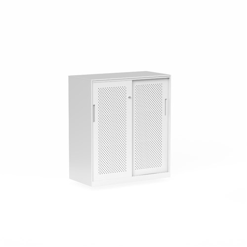 • Sliding doors allow easy access while maintaining a sleek, modern appearance, perfect for storing documents, samples and office essentials.