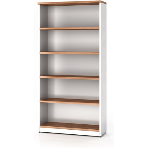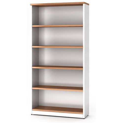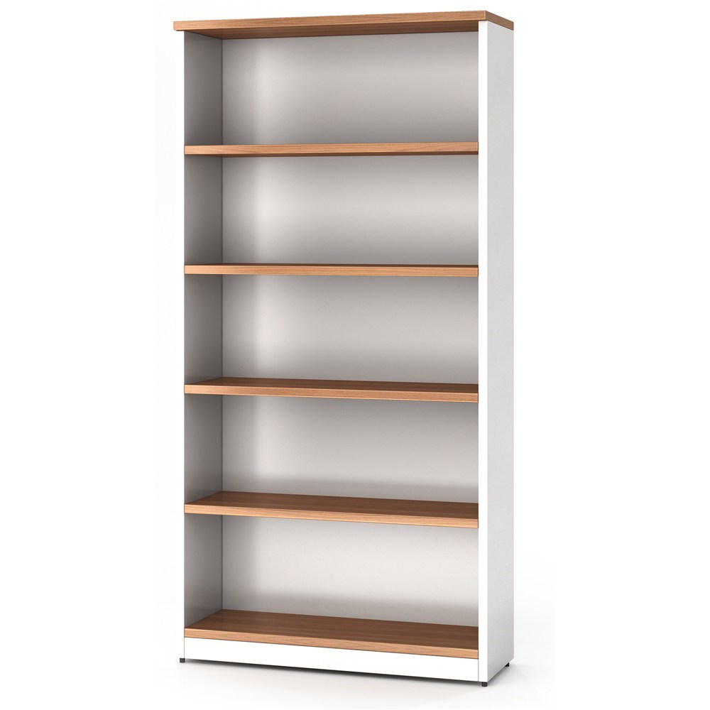 OM Premier Bookcase 900W x 320D x 1800mmH 4 Shelf Virginia Walnut And White