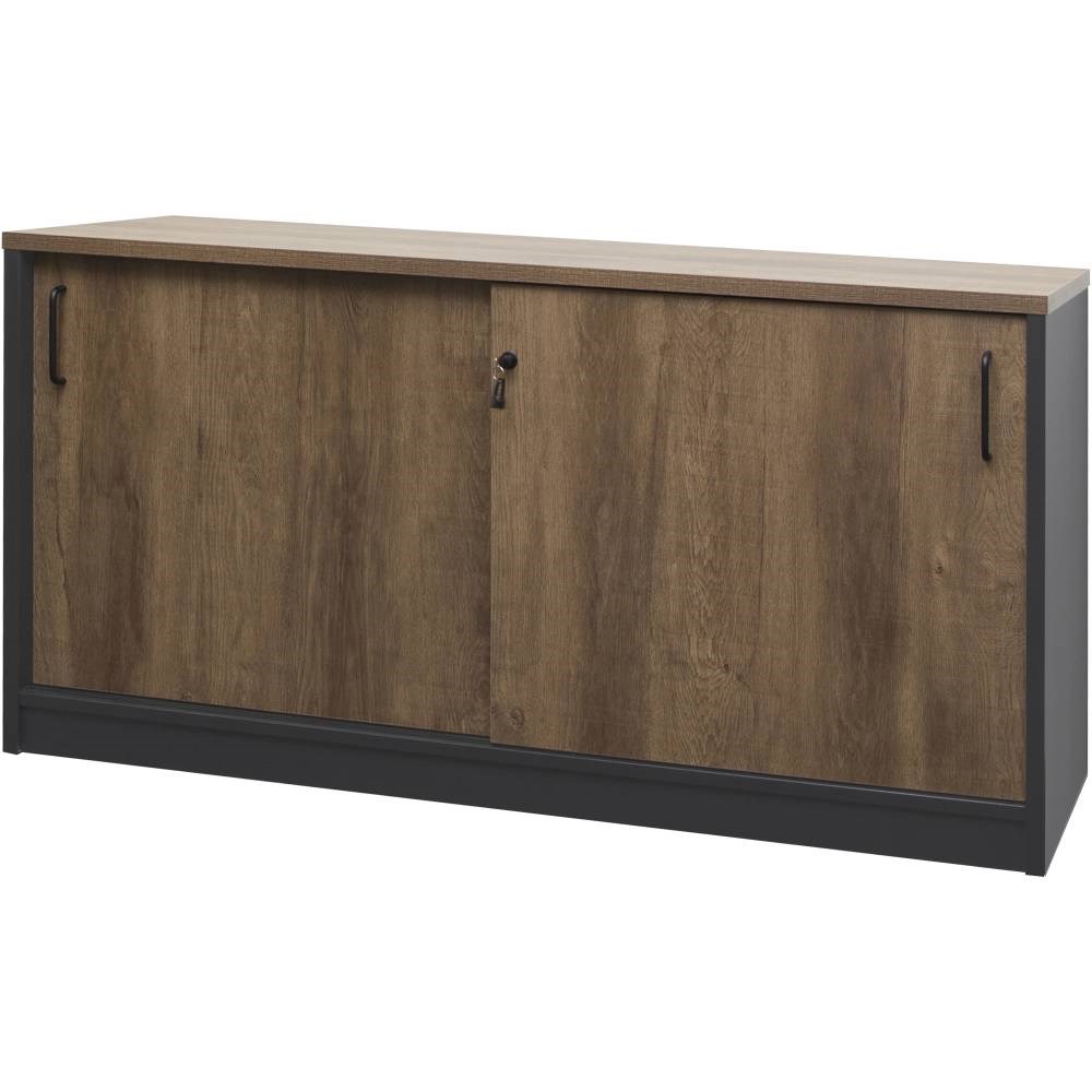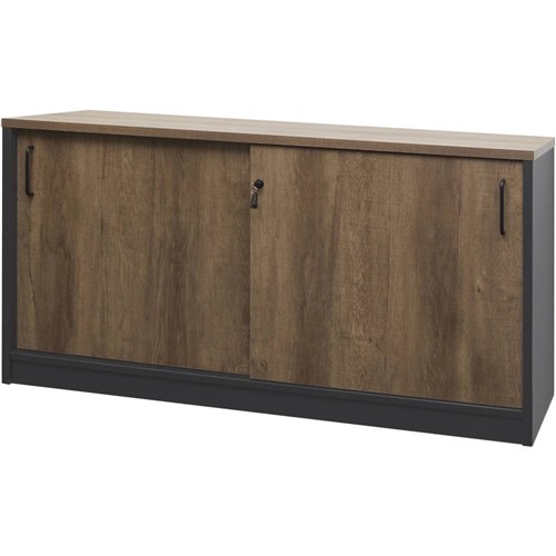 OM Premier Credenza Sliding Doors 1800W x 450D x 720mmH Regal Walnut And Charcoal