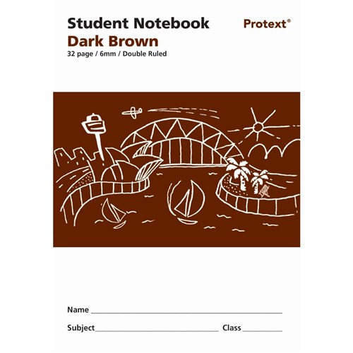 Protext Student Note Book 250 x 175mm Double Ruled 6mm 32 Page Dark Brown