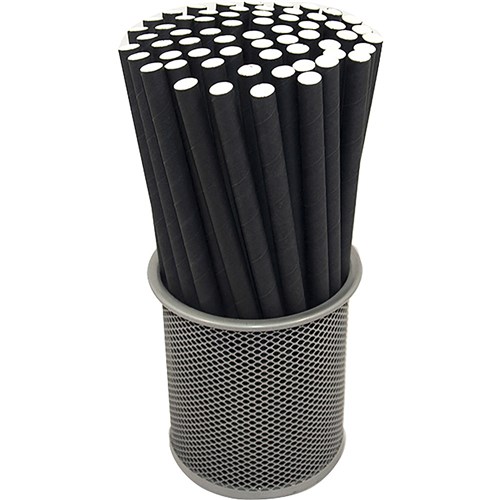 Rainbow 8mm Individually Wrapped Paper Straws Black Carton of 2000