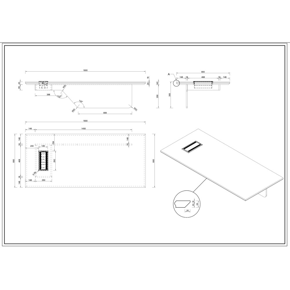 • Top Dimensions: 1800W x 800D x 25mmH.