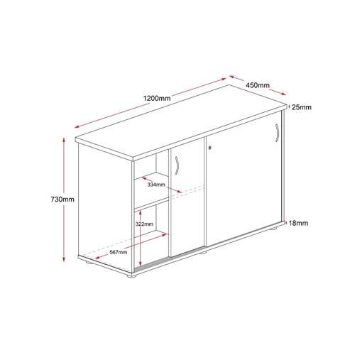 Rapidline Credenza Sliding Doors 1200W x 450D x 730mmH Cherry And Ironstone