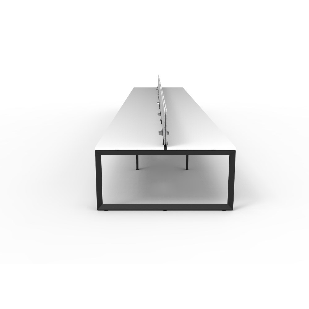 • 10 person double sided workstation with White top and Black Satin frame, Grey Eco screen.