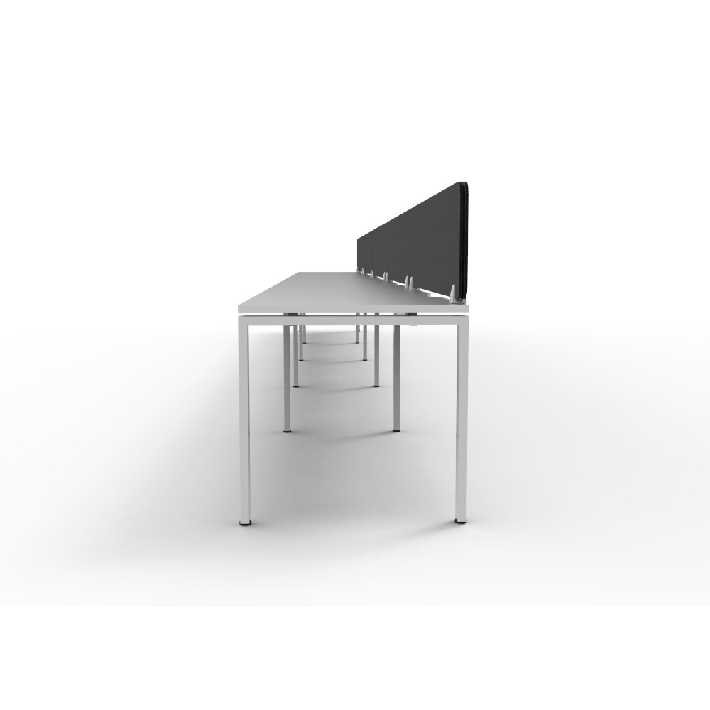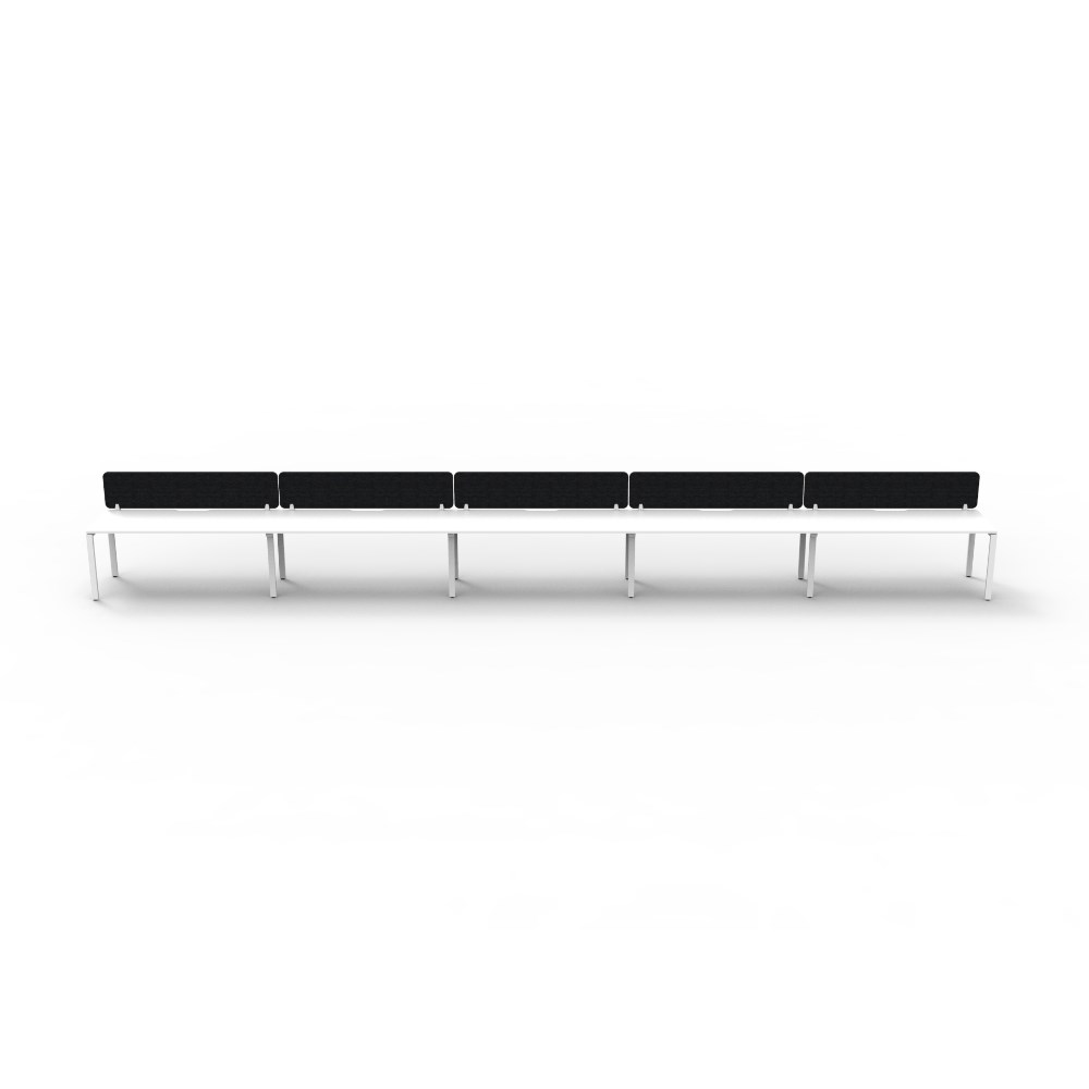 • 5 person single sided workstation with White top and White Satin frame, Black Eco screen.