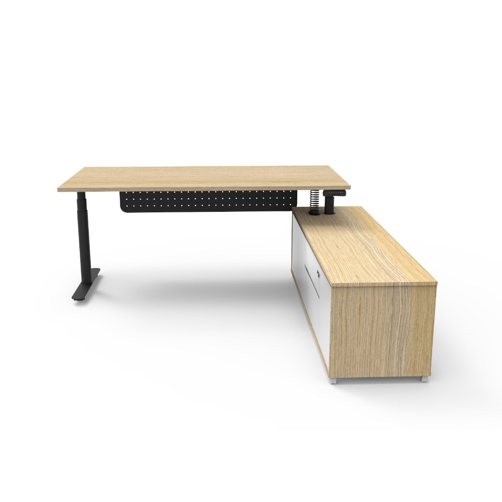 Rapidline Halo+ Executive Desk + RHS Cabinet + Panel 2020W x 1936D x 620-1270mmH Oak/Black