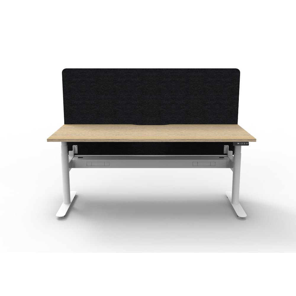 Rapidline Halo+ Single Sided Workstation + Black Eco Screen +Tray 1800Wx620-1270mmH Oak/Wh