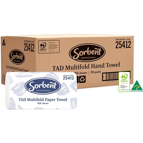 • Sorbent Professional TAD hand towels are ideal and cost-effective solution for high traffic washroom areas.