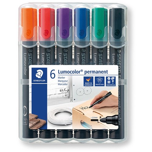 Staedtler 352 Lumocolor Permanent Marker Bullet 2mm Assorted Wallet of 6