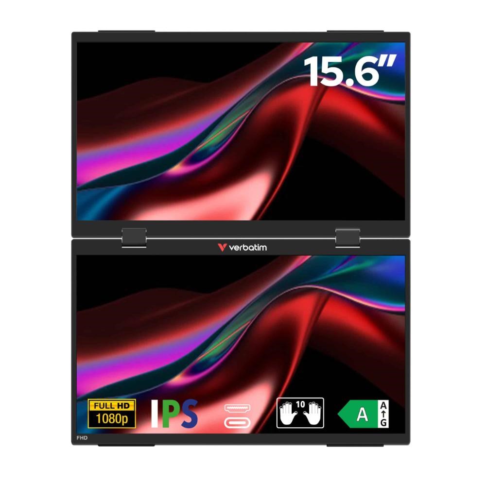 Verbatim Essential Full HD 1080P Portable Dual Monitors 15.6 Inch Black