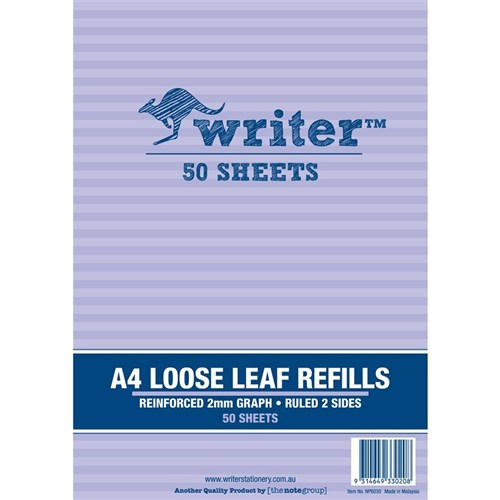 Writer Binder Refills A4 2mm Graph Reinforced Pack of 50